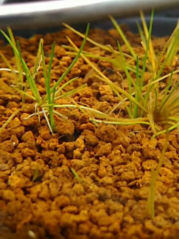 JUGEMテーマ:国産改良品種メダカ めだか販売店、小山メダカセンター店主のブログです。 ボトルアクアリウムとして、1ヶ月ほど前に小さな容器に水草(マツバイ)を植え込んでおいたのですが、それが少し成長してきたようです。 冬なので成長は遅めですが、やり方次第ではヒーター無しでも成長するようです。 コツは容器に蓋をしておく事と日当たりのようです!?