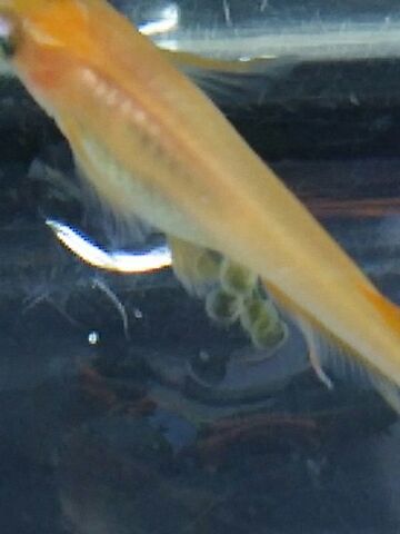JUGEMテーマ:国産改良品種メダカ めだか販売店、小山メダカセンター店主のブログです。 ハウス内の加温水槽で、ペアリングしている親メダカが初産卵をしていました。 屋外から加温水槽へ移動してから約10日ほどでの初産卵ですので、ほぼ予想通りといった感じでしょうか。 …この調子で、毎日たくさんの卵を生んでくれる事を期待してます!?