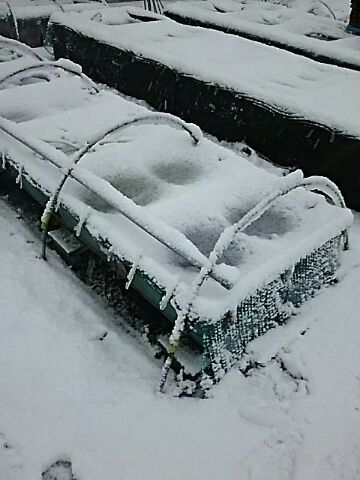 JUGEMテーマ:国産改良品種メダカ めだか販売店、小山メダカセンター店主のブログです。 昨夜から降っていた雨が未明には雪に変わり、朝になって外に出たところ辺りはすでに雪景色になっていました。 今シーズンとしては初めての積雪です。 朝の時点で積雪は5〜6?ほどでしたが、二年前の大雪の時にはメダカ用ハウスが潰されかけた経験もあるので、念のためにハウスの雪だけは早めに下ろしておきました。 昼前には雪のピークも過ぎ、今回は大した被害もなく済みましたが、太平洋側は暖冬の年ほど雪が多いとも言われるので、しば...