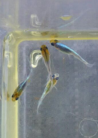 JUGEMテーマ:国産改良品種メダカ めだか販売店、小山メダカセンター店主のブログです。 画像のメダカは当方が品種開発を進めているメダカの一つで、ツートーン体外光(仮名)と呼んでいる系統です。 ちなみに過去のブログを確認してみたところ、2013年に交配をスタートしたと書かれていたので今季で6年目という事になります。 特徴としては黒ベース(濃青?)の基調色で、部分的に入る黄色素と体外光、そして透明鱗性による黒勝の目があげられます。 黄色と体外光が爽やかで当方もお気に入りのメダカなので、ぜひ品種...
