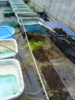 JUGEMテーマ:国産改良品種メダカ めだか販売店、小山メダカセンター店主のブログです。 ここ最近は雨の日が多かった事もあり、屋外の作業が色々と山積みな感じです。 今日は久しぶりに天気がもちそうだったので、野外の養魚場の整備に手をつける事にしました。 という訳で、まずは飼育容器の排水用の溝掘りに取りかかりました。 しばらくぶりの土木作業で腰にきましたが、そのかいあって予定どおり排水用の溝ができたので、次回からは効率よく飼育容器の水換えが出来そうです。