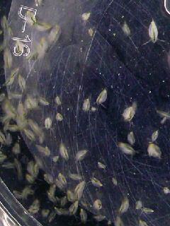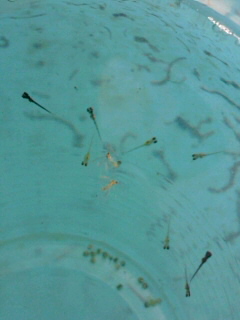 JUGEMテーマ:国産改良品種メダカ めだか販売店、小山メダカセンター店主のブログです。 先日メダカの稚魚を放したハウス内の保温プラ舟では、先にミジンコも入れていた為、現在ミジンコと稚魚が同居状態になっています。 まだ稚魚が小さいのでミジンコは食べていませんが、メダカの残り餌などをミジンコが食べて水質を浄化する作用もあるので、たくさん増えたミジンコと稚魚の同居状態は、ある意味理想的な環境と言えるかも知れません。 もう少し稚魚が成長してくると、ミジンコを追う様子が観察出来るようになると思います。 ...