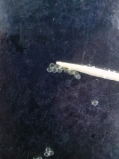 JUGEMテーマ:国産改良品種メダカ めだか販売店、小山メダカセンター店主のブログです。 このところ朝になるとハウス内の保温水槽に向かい、黒黄ツートーン光沢メダカ系統の卵を採卵する事が毎朝の日課になっています。 この系統は現在、種魚を3組に分けて採卵を進めているのですが、1日の産卵数は3組を合わせて30粒〜50粒くらいといった感じでしょうか。 採卵した卵は日毎に分けて、尚且つ卵が塊状の場合は一粒ずつに手でバラして管理しています。 又、採卵してからふ化するまでの間に白く変色した卵は、ふ化する事の無...
