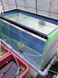 JUGEMテーマ:国産改良品種メダカ めだか販売店、小山メダカセンター店主のブログです。 当方の場合、あまりガラスやアクリルの水槽をメダカ飼育に多用する方ではないのですが、例外的に冬場の繁殖用としてハウス内では少しだけガラス水槽を使ったりもしています。 冬場の繁殖用と言う事で観賞魚用ヒーターの使用が前提になる訳ですが、ガラス水槽の場合でも、節電対策の為にも保温対策はしっかりと施しておいた方が良さそうです。 ちなみに当方は水槽の背面と両側面に保温シートを張り付けて使用しています。