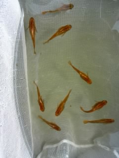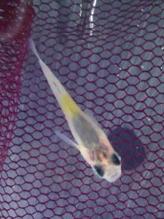 JUGEMテーマ:国産改良品種メダカ めだか販売店、小山メダカセンター店主のブログです。 先日、黒黄ツートーンメダカと黄色光沢メダカの交配から生まれたF1(交雑第1世代)の水槽を観察していたところ、待望の黄色素を持った黒黄ツートーンの個体を1尾だけですが発見しました。 今のところ黒黄ツートーンになっている個体は1尾だけのようですが、これで一応は黄色素が遺伝した事になります。 生後3ヶ月近くなっても体色が揚がってこなかったので、一旦はあきらめかけていただけに嬉しい発見です。 あとは黒黄ツートーンに...