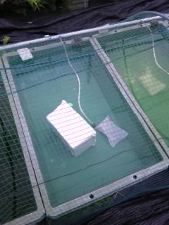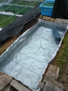 JUGEMテーマ:国産改良品種メダカ めだか販売店、小山メダカセンター店主のブログです。 今日は比較的涼しかった事もあり、前々からやろうと思っていたシート池の修復をする事にしました。 まずは古くなった防水シートと腐ってしまった木枠を撤去して、新たに波板で外枠を作ります。 以前は木の板で外枠を作っていましたが、すぐに腐ってしまうので、最近は腐る心配の無い水田用の波板を使っています。 外枠が完成したところで新しい防水シートを被せて、雨水抜き用のオーバーフローを設置して一応完成です。 という事でさっそ...