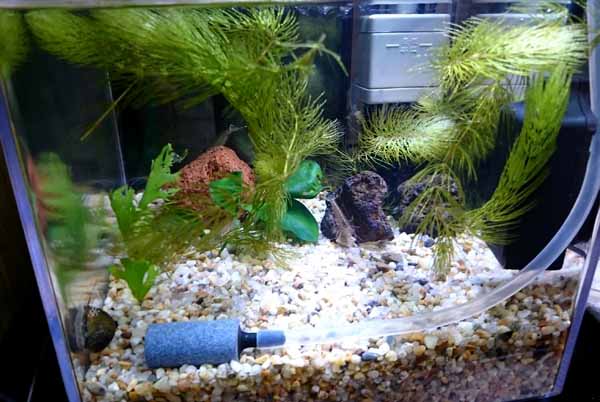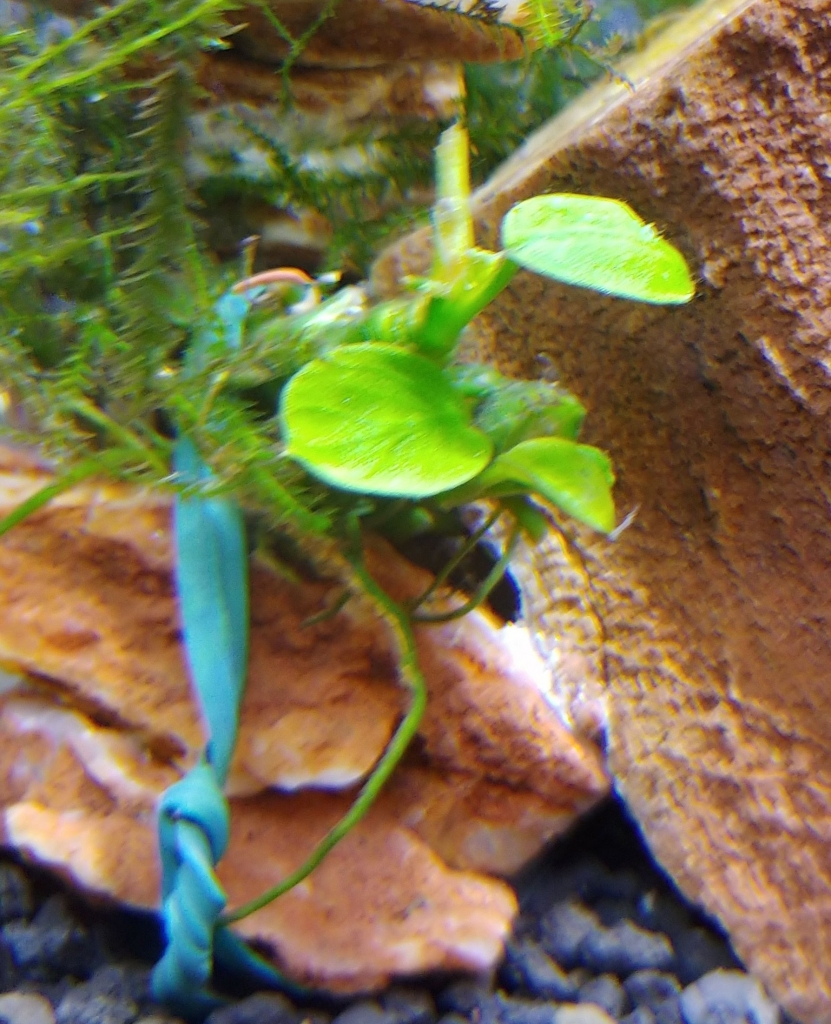 JUGEMテーマ:アクアリウムブログ 先日、紅木石のオブジェを組み上げて、周りにモスやらアヌビアス・ナナをつけてから、オブジェが外れたことに気がついて、水槽から取り出し、接着剤でつけていたら、アヌビアス・ナナの葉っぱが乾燥してクシュっとなり、その後… 緑色のところを石巻貝に食べられました。 今現在は更に葉の形も無く、茎だけ残ってます。 写真をよく見ると、先端の葉の付け根のところに、新しい葉が生えてきてます! どうにか生きてい...