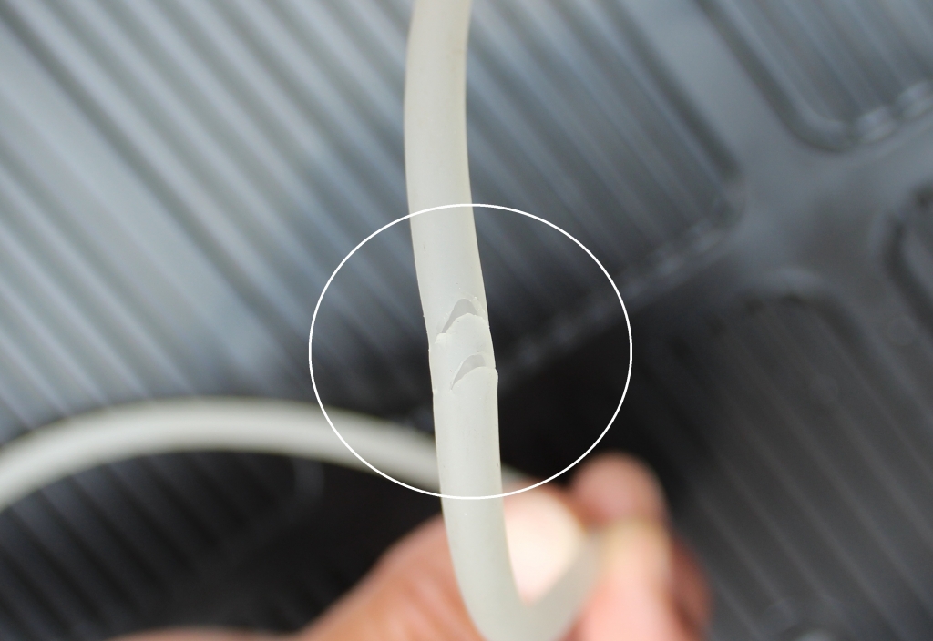 JUGEMテーマ:めだか歳時記 皆さん、こんにちは。 最近、野良猫たちが増えて近所の方々も困っています。 一番の実害は庭に所かまわずフンをすることですが「きらら」では別の被害が頻発し始めました。 ▼野良猫があちこちのエアーチューブをツメで切り裂くのです。 夜中、時には白昼どうどうとやって来て、手の届く範囲のエアーチューブにツメをたて、 こらんの通り逆Vの字に穴をあちこちに開けてしまいます。腹立つはほんま・・・( `ー´)ノ 仕方がないの...