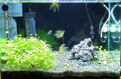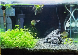 JUGEMテーマ:熱帯魚 ロタラは全部抜きました。 やっぱり、ダメでした。 伸びすぎたオーストラリアンノチドメを右側をエビの隠れ家用に残して抜いてしまいました。 左側から石もどきを乗り越え右側へ伸びていくオーストラリアンノチドメをイメージしましたが・・・。 イメージ通りにいくかな?