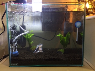ひたすら瓶生活だったカナフミ、 ようやく水槽に戻ってきたよ! 今までの水槽とは一味違う! フェイクじゃなく本物の水草! バイオサンドを使用してるので水質も安心! エアーレーションのブクブクに興味津々のカナフミ。 めちゃくちゃ可愛いーーーーーッッ!! ただ簡素な水槽なので水流が気になる。 このままだとカナフミのストレスが溜まってしまうので、 もうちょっと水草は増やす予定。 できれば大きめが良いかな〜。