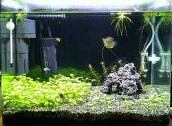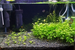 JUGEMテーマ:熱帯魚 残り半分も植え替えました。 ロタラは全部捨てきれず、少しだけ残しました。 半年前に買ったのかな? やっと作り物のブロックも置けましたね(笑)。