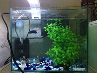 薬浴から10日経って、試験的に元の水槽に移した。 2/3は元の飼育水、1/3は薬浴時の水。 もちろん元の飼育水は換水してPHチェックも済んでる。 ph6.5、普通の熱帯魚だとやや高いけど、 ベタはこのぐらいでOK。 久し振りに大きな水槽に移ったせいか、落ち着きがないカナミん。 それでもエサはしっかり食べてくれたので、 このまま回復してくれたらなーという気持ちでいっぱい。 分かりにくいけど、フィルターに巻きついて遊ぶカナミん。 いや、遊んでんのか? ベタは流水が苦手らしいの...