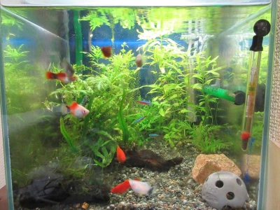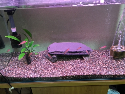 だいぶ間が空いてしまいましたが(^^;) 今月の近況です。 妊娠してる子が4匹います(;^_^A 親は隔離せずそのまま生ませています。 水草の他、稚魚の隠れ家になりそうなものをいくつか入れてあるので、どこかしらには隠れて、避難?出来ると思います。 出来るだけ稚魚は捕獲して、プラケに移していますが、一部の稚魚はこのまま成り行き任せにしようかと思っています。 この子達はカメラ好きで、映りたがっているようです(^^) JUG...
