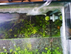 JUGEMテーマ:熱帯魚 水換えして1週間するとこんな感じで泡泡です。 ロタラを植え替えたあとからかな? 残った魚もエビも大丈夫そうだけど・・・。