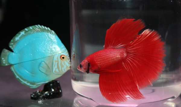 JUGEMテーマ:熱帯魚 グランママには、 こんなお魚もいますよ。 ベタの ”スーパーデルタ” です。 何故か、店長が目につかない所に置いているので お客様に見てもらえません。 謎です。