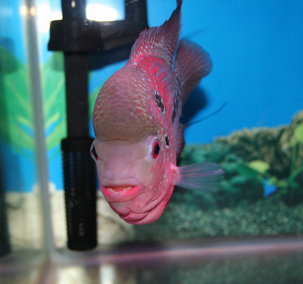 JUGEMテーマ:熱帯魚 お客様の顔を見るといつもはしゃいでいる子です。 この子にしてみれば、「ごはん!ごはん!はやくくれー」と 言っているだけでしょうが とても愛想よく見えます。 ショートボディータイプです。 グランママでは フラワーホーンが割と女性の方に人気があります。