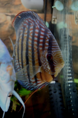 JUGEMテーマ:ディスカス 今日は、午後から風が強くなってきたので エナちゃん(野良出身)外の錦鯉の警備を止めて 店内の警備に切り替えたようです。 Wフォンテボアグリーンディスカス 約13〜14cmです。 飼い込む楽しみのある子達です。