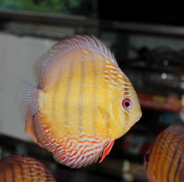 JUGEMテーマ:ディスカス 今日のお問い合わせディスカスです。 ハイフォームレッドダイヤモンド 約7〜8cm ¥4,580−(税別)です。 水槽2本に たくさんの子達が泳いでいます。