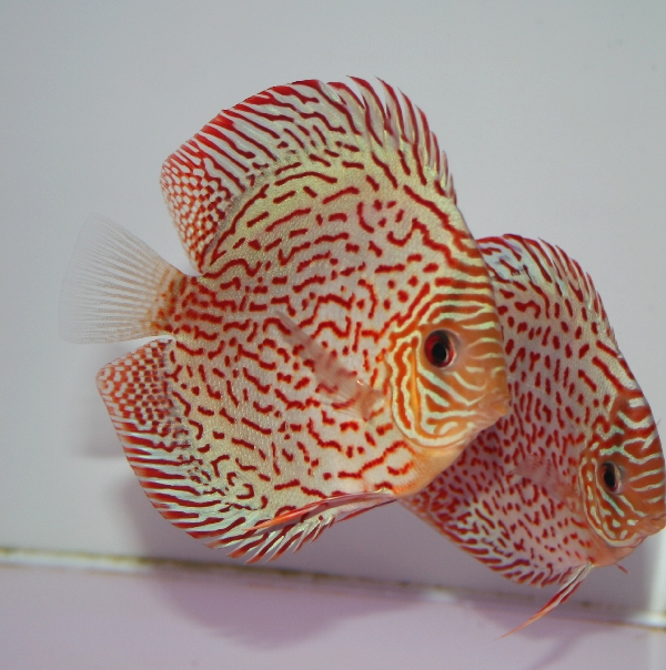 JUGEMテーマ:ディスカス ディスカス飼育についてお問い合わせを頂く中に アクリル水槽の色とディスカスの体色についてのお尋ねを結構頂きます。 赤系・青系・黄色系・白系・アルビノ系等色々なパターンがありますが 今日は、赤系のラフレシアレッドとライオンヘッドレッドギャラクシーディスカスを 底面白・背面黒のアクリル水槽に入れている様子を撮影しました。 古いコンパクトデジカメで撮影した画像のため、所々露出オーバーになったりと 観にくい動画ですがお許しください。 店長、残念な...