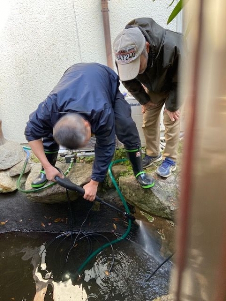 JUGEMテーマ:錦鯉 JUGEMテーマ:ディスカス 店長、午前中はちょこちょこと 錦鯉池の補修に出かけています。 補修前に池を洗っています。 高圧洗浄機で苔を綺麗に落としています。 天気を見ながらの作業なので、もう少し日にちが掛かります。 3月31日まで、決算セールをやっていますが 店長、作業に熱中していると、 ...