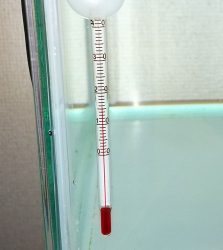 JUGEMテーマ:金魚 黒らんちゅうの水温です。 黒らんちゅうと江戸錦は普段人のいない部屋に置いているので 45cm水槽と水温が4度ぐらい低いのです。 なので最近エサはかなり控えめです。