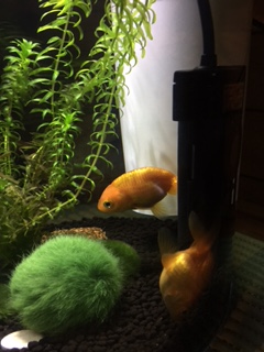 底で横たわる大金を見て 最初はドキッとしてましたが だんだんと慣れてきました。 それでも心配でつい 呼吸してるか覗いちゃう。 横たわったり、頭を下にしたりして 固まっているかと思いきや 時々ギュィ〜ンと力強く 普通に泳いだりしている時もあります (エサの時とか)。 水草によくぶつかったりしてるので 上手く泳げなくなってる模様。 それでもいつのまにか 横たわりながら移動する術を 体得しているのがすごい …と、...