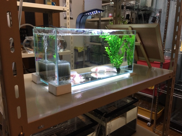 JUGEMテーマ:ウーパールーパー こんばんは! 今日は午後から営業で、お店の水槽のメンテや配置換え等行いました。 「大きいウパが高いところにあって見えにくい」 「おウチで綺麗に飼いたいけどイメージがわかない」 等のお声を頂いておりましたので、大きいウパを少し低いところへ展示し、またおウチで飼う場合の一例とて展示いたしました。 大きいウパは、LEDはいらないにせよ、おウチで水槽で飼うとすれば、水槽+フィルター+水草+土管などがシンプルでいいかなと思います。 このセットだと産卵...