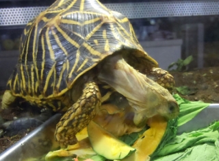 お食事中のインドホシガメ クゥさん もう、目が必死です(何 何が?何か問題ある?なんか文句ある? 最近、遅れてきた食欲の秋なんだよ このところ、いつにも増して食欲旺盛なクゥ ちっとも寒くならないから、 食欲の秋なモードなんでしょうかね?(ぇ 我家のインドホシガメ クゥさんにポチっとしてくれたら嬉しいです JUGEMテーマ:ホシガメ