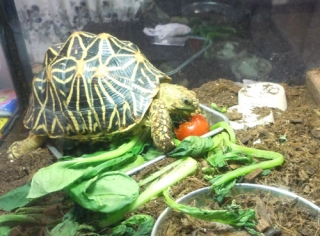 我が家のインドホシガメ クゥさん なんか、機嫌が悪かったのか… ケージの中をウロウロウロウロ… お皿をガッシャンカッシャンひっくり返して この距離感でも睨んでるのがわかります(ぇ ミニトマトで機嫌なおしておくれヽ(´▽`)/ そんなうちのカメも、今日でうちに来て満6年。 6年かぁ…生まれた子が小学生になるんだもんなーと 考えると若干感慨深いものがあります(ぇ 7年目もよろしくね。クゥさん。 我家のインドホシガメ クゥさ...