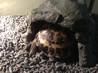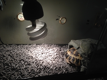JUGEMテーマ:ロシアリクガメ 午前中にサスケを動物病院へ連れて行き、夕方、迎えに行った。 食事を終えて戻ってくると、暴れたのか床材が散乱して、床ヒーターが見えていた・・・ フードはたくさん食べたので、機嫌は悪くないようだ。