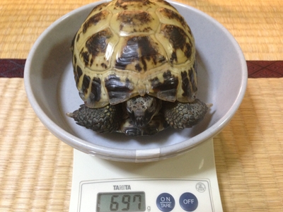 JUGEMテーマ:ロシアリクガメ珍しく土曜日にサスケを動物病院へ連れて行くと、主治医は不在だった。 吸入(治療)を終えたサスケを、夕方、迎えに行った。 食事を終えて、家に帰ってから、体重を測定した。 寒くなってきたので心配をしていたけれど、サスケの体重は増えていた。 家の中を歩き回っているハッチャクも、同じく5g増えていた。 これからの季節は、こまめに体重を測定しよう。 【サスケの体重の記録】13年11月30日 697g(前回[13年11月10日]との差 5g) 【ハッチャクの体重の記録】...