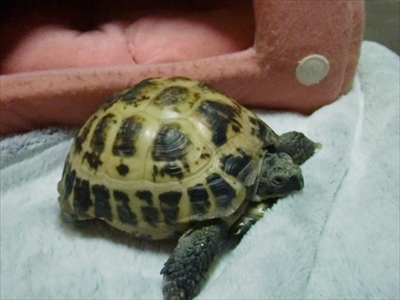 JUGEMテーマ:ロシアリクガメ サスケがお世話になっている先生は不在だったけれど、リクガメを診ることが出来る先生がいたので、サスケを迎えに行く時にハッチャクを連れて行った。 診察の結果、それほど問題はないようで一安心である 注射などの治療はされなかったけれど、嘴、爪を切られたハッチャクは、帰宅後、甲羅の中に隠れてしまった・・ ただ、3週間に一度の通院していて慣れているサスケの方が、ガッチリと甲羅の中に隠れて、顔をなかなか出さなかった・・・