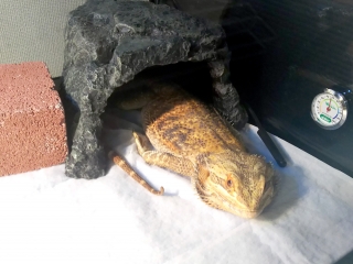 昼11時頃ケージを見ると、シェルターに居るジョーさんが寝転がっているポーズではなく、前足を地に着けていた。 あれ?どした?としばらく見ていると… スッと立ち上がり、スタスタとバスキングスポットへ。 そして何食わぬ顔でバスキングを始めるジョーさん。えーと…どうした。 まあ、これから温浴しようと準備していた所だったので、好都合ではあるのだが。 シェルターに篭っているジョーさん...