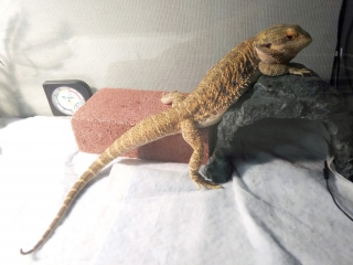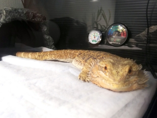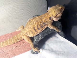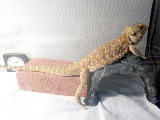 おはようございますジョーさん。 昨夜シェルターで眠っていたジョーさんだったが、朝飼い主が目覚める頃には定位置に戻っていた。朝一番のバスキングを終えた所なのかも知れない。 飼い主が仕事へ出かけようとしている頃、バスキングスポットへ移動したジョーさん。 角度を変えて見ると、胸やお腹を石にペタリとくっつけている。そしてお腹の模様がよく出ている。 消化を行うために腹部を温...