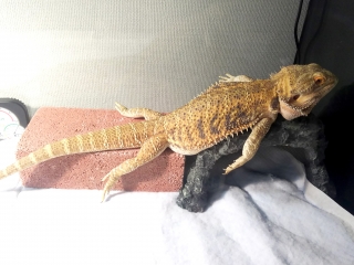 口周りの脱皮殻が中途半端に残り、髭の様になっているジョーさん。おはようございます。 昨日英国紳士風と見せかけてただの無精髭顔だったジョーさんだが、今日はガチで紳士風で行くらしい。立派なお髭でらっしゃいますな、ミスター。 バスキングスポットには尿酸だけのフンが落ちている。 今日の野菜は小松菜、オクラの2種。 それにしても立派なお髭です...