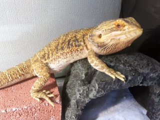 おはようございますジョーさん。丸40時間ぶりくらいですね、お久しぶりです。 起床からしばらく時間が経っているので、バスキングスポットには既に排泄物が転がってる。大きさはまずまず。 小松菜、グリーンリーフ、ズッキーニ、リトライとなるスイカを少量入れた餌皿を入れた所、ジョーさんが食べにやって来た。 15時頃、バスキングするジョーさん。模範的...
