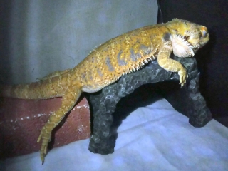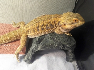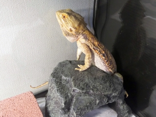 23時頃、一泊二日の外出から戻った飼い主。 ジョーさんは定位置でぐっすり眠っている。 バスキングスポットには干からびたフンがひとつ。 昨日した物なのか、今日した物なのか。踏んづけていないと良いのだが。 ジョーさんの寝顔を寄って見てみる。 薄っすらと目が開いている気がする、そして隙間から白目が覗いている気がする。 上段のビーさん共々、今回のお留守番も何事もなかった...
