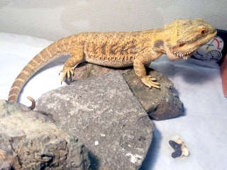 おはようございますのジョーさんと、奥の石にひっそりと控える本日のフン。 ジョーさん、バスキングしている所申し訳ないんですけれど、片付けたいんでちょっとそこどいてくださいね。 今日のフンにズーム。 ツヤツヤして形もしっかりして、良いフンである。 重なっていた石をどけると、更にフンが隠れていた。 石と石の隙間に排泄する習性でもあるのだろうか、フトアゴヒゲトカゲは。 ...