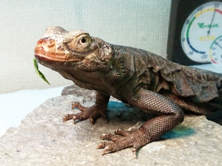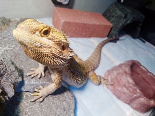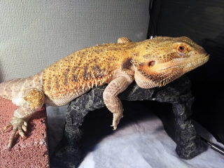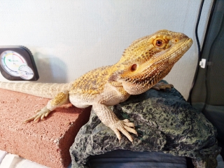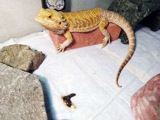 朝、ライト点灯から20分程経った頃ロールスクリーンを上げると、なんか見たことない生物がケージを徘徊していた。 あ、えーと、ジョーさんですか。なんと変わり果てた姿に…。 しっぽだけ別の生き物みたいになっている。 ライトが注いてからまだ20分しか経っていないというのに、バスキングスポットにはもうフンがしてあった。 早いな。まさかライトが点く前に催している訳じゃないよな。 ...