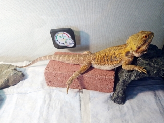ライト点灯から10分、バスキングするジョーさん。 おはようございます。 足元には既に排泄したてらしきフン。 まだケージが温まり始めたばかりなのに、もうトイレタイムを迎えたのか。早いな。 ちなみに、飼い主が写真を撮ろうとしている所へジョーさんが石から降りてきてフンを踏みそうになったので、ちょちょちょ、と手でガードし、ギリギリの所で立ち止まったジョーさんの尻尾を持ち上げて撮影したのがこの画像である。 ...