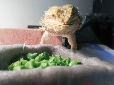 おはようございますのジョーさん。野菜の入った餌皿を見に定位置から降りてきたのだ。早速召し上がるのだろうか。 中身は小松菜、チンゲン菜、インゲン。 と思ったら向きを変え、生暖かいゾーンでバスキングの様な体勢をとるジョーさん。 えっと、飼い主は仕事へ行きますね。 夜帰宅し、餌皿確認。 これは、食べたのでは?インゲンがかなり減っている様に見えるが。 &nb...