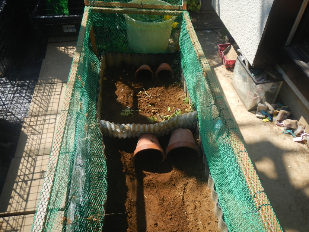 JUGEMテーマ:カメ全般 今日は〜〜 以前ドロガメ用に作ったエリアをハコガメ用に改修しました! ん〜〜 ただ単にトロ船を取っ払い 土を戻し隠れ家に植木鉢を埋めただけ! 取りあえずはミツユビとキタニシキを入れる予定です! トウブハコガメはトロ船をしようし別に作る予定です!