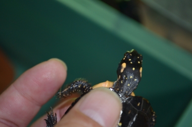 JUGEMテーマ:カメ全般 皆さんおはよ〜〜ございます! 顎無しキボシイシガメの中耳膿瘍その後の様子ですが 切開した所も殆ど判らなくなってきています。 ヨシ(*^^)v! 餌の摂取もシッカリ出来るまでに回復もしています。 &今回の中耳膿瘍で色々と調べてなんとなく解ったのが 自然に治った事例は極めて少なかった事ですかね! なので気になったり症状が現れたら 迷う事無く病院に行った方が良い事ですかね! それとカメを見てくれる病院も 見つかったので良かったかな! ...