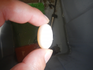 JUGEMテーマ:カメ全般 皆さんこんにちゎ! う・う・産んでいた〜〜〜! 何故か又水の中・・・ 綺麗な卵です! 右が前回の卵です! 並べてみると色が違いますよね! 又発生してくれるといいな〜〜! & 今回は産卵床を設置していたけど水中産卵・・ ん〜〜まだ環境が合っていないって事か・・・ 改善しないとな! それと産卵の兆候が解らなっかったな〜〜 食欲も普通に有ったしな〜〜! 見極めが難しいな!