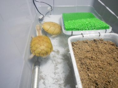 JUGEMテーマ:カメ全般 皆さんこんにちゎ! 今日は越冬中のキイロドロガメ起こしました! 砂の深さは30?程あるのですが 殆ど一番下まで潜っていました! これだと底から冷えてしまうので来年は 容器の下に発泡スチロールを敷いてあげよう! 先ずは10〜12度位の水で泥落としです! 実際起こし方は全く知らないのですが〜 カメ事態が凄く冷たかったのでいきなり温かいお湯だと カメもヒートショックを起こすのでは? と〜思いかなり低めの水温から始めました!! ...