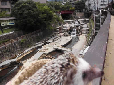 ども、ちくのすけです。 オイラは兵庫県神戸市の有馬温泉に来てるゾ。 どこかで滝が見られるというコトで温泉街を探検なのだ! 有馬川に沿って坂を上って行くと、早速水が落ちる音が聞こえてきたゾ。 いきなり滝発見!と思いきや、ここは「ゆけむり広場」らしい。 この水が落ちてる中に入れるみたいなので入ってみた♪ …なんか大雨降ってるみたいだゾ(フシュ! 本物の滝を探すために温泉街に入っていくゾ。 おまんじゅう屋さんもあったけど、やっぱり有馬温泉といえば名...