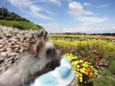 ども、ちくのすけです。 オイラはお花が大好きだから、よくお花がいっぱい咲いてるトコに連れてってもらえるゾ。 ココもきれいなお花が満開だな♪ よし、片っ端からクンクンするゾ(フシュ! あっちの丘に紫色のお花がいっぱい咲いてるの発見!! よし、ここから降りてあの紫のお花畑に向かうゾ! 行けーーーっ! 毎晩回し車で鍛えてるから、長距離走はオイラ得意だゾ。 到着。ふぅ〜。 オイラの経験上、紫色のお花はいつもいい匂いするんだ。 今回も予想通りいい匂いだゾ☆ ...