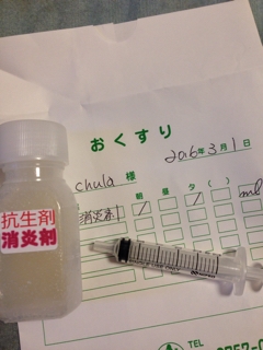 JUGEMテーマ:ハリネズミ 通院2日目。 今日は院長休みなので、別の先生が診てくれた。 移動中にウンチするのは恒例になっている。 夕べの食事は普段の3分の2くらい。 血尿あり。 昨日より元気があるように見える。 なので、注射はせず自宅での投薬だけになった。 院長がいる明日また通院。 シリンジでお薬を飲むchula。頑張ってます!