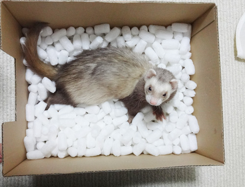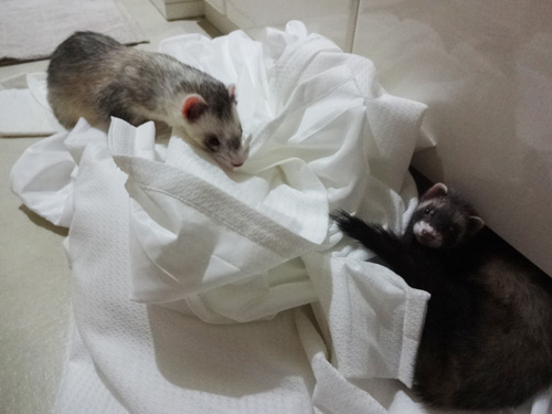 JUGEMテーマ:フェレット イタチにとっては、遊び道具 新聞紙を入れる袋 カサカサいうし、楽しいらしいw ※虎ちゃんと熊ちゃん2匹います
