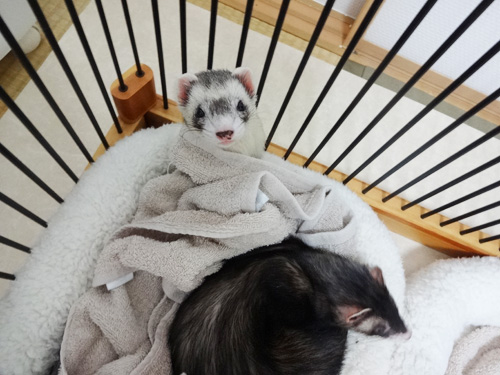 JUGEMテーマ:フェレット 幸せそうでなにより 5歳を過ぎた虎ちゃんですが、一番年下の銀ちゃんと毎日バトルをするほど元気いっぱいです。 大きな病気をすることなく、ここまで健康でいてくれて感謝